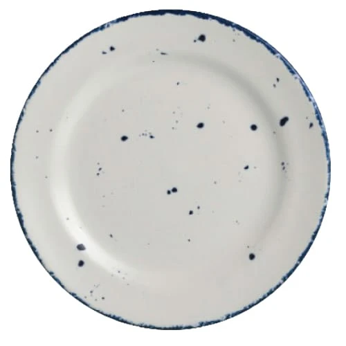 Add a dab of color to your table setting with this 11″ round plate from Anfora. It is part of the Brisa Collection and features an enamelwear-like finish and hand-applied, reactive blue glaze on the rim and body. Perfect for rustic, outdoor themed venues!