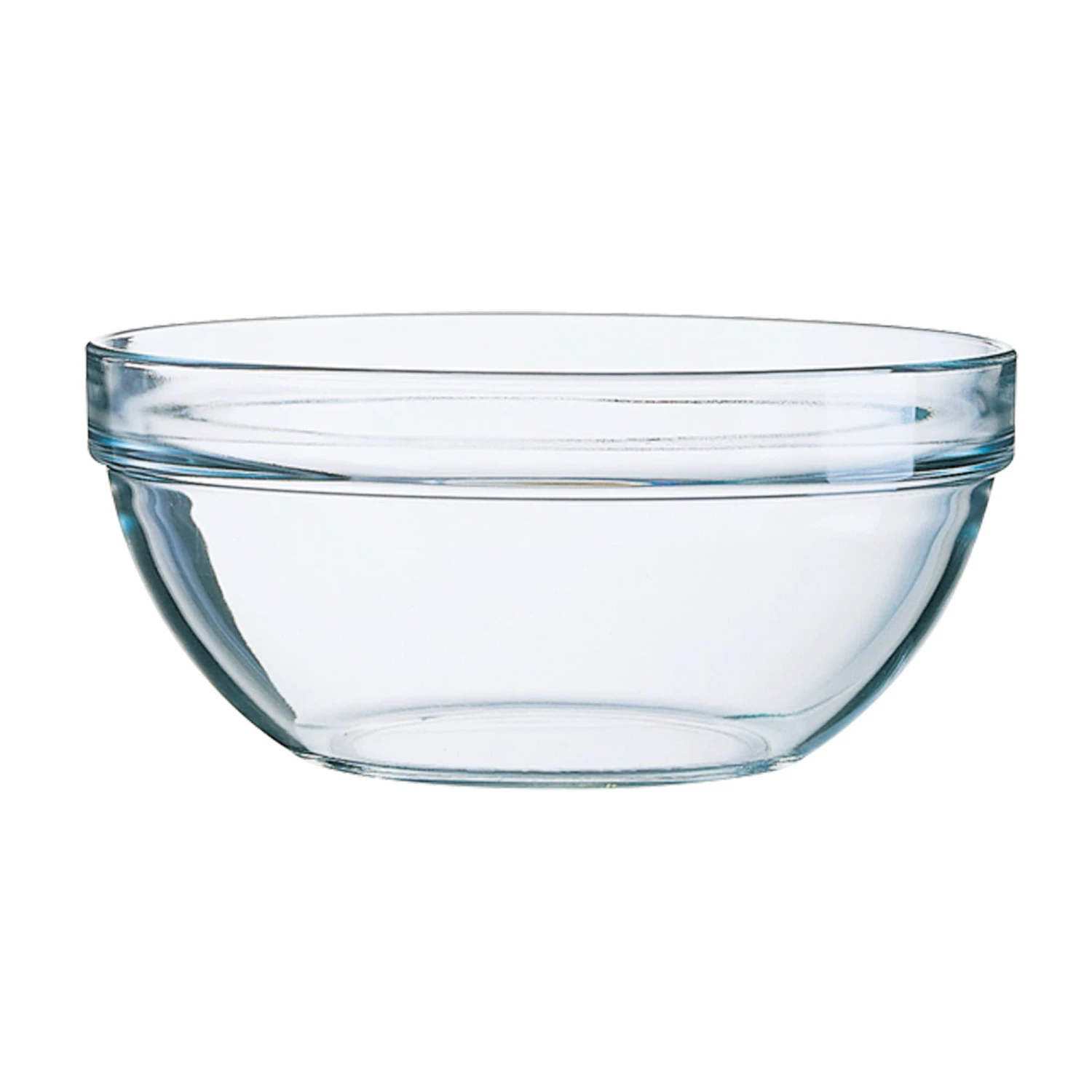 Fully tempered clear glass stackable bowls. Highly durable and functional ‐ equally at home in the front of the house or in kitchen prep. This collection of right sized bowls stack easily and securely and are offered in a variety of useful capacities from small condiments to large serving sizes.