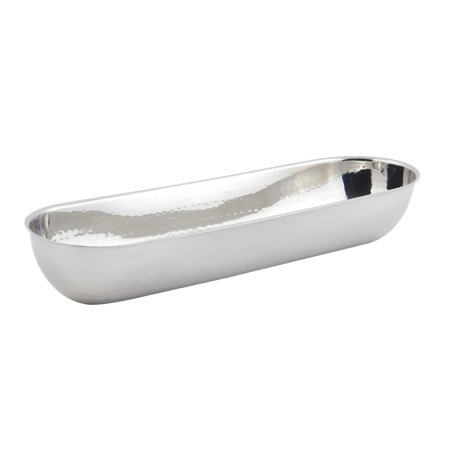 Serve snacks with style in this 2.5 Qt. oval bowl with a hammered stainless steel finish.