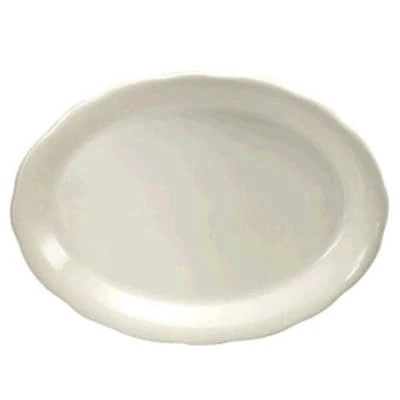 For a touch of class, bring this scalloped rim oval platter from the Caprice™ Undecorated line to the table. As your guests admire the charming look of this platter, they will be impressed by the warm white China.