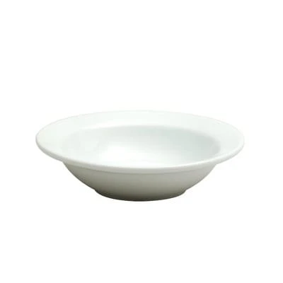 When you add this lovely Bright White Ware Grapefruit Dish to your table, you can be sure it will fit right in. The dazzling white porcelain has a reinforced edge for durability.