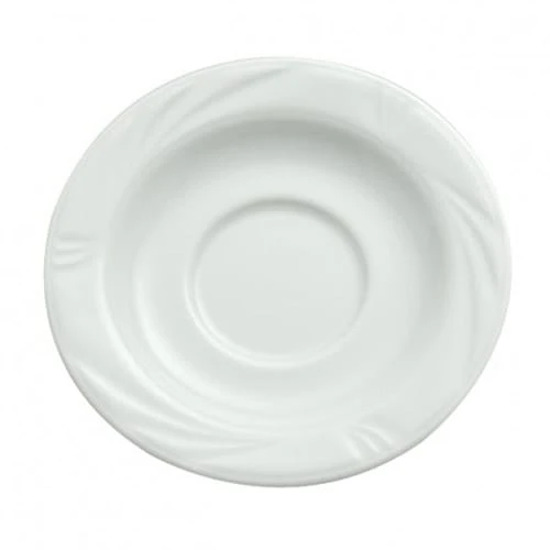 This Buffalo Arcadia™ saucer is gracefully embossed with a mid‐size rim for a generous serving area. This saucer is durable, practical, and pleasing to the eye.