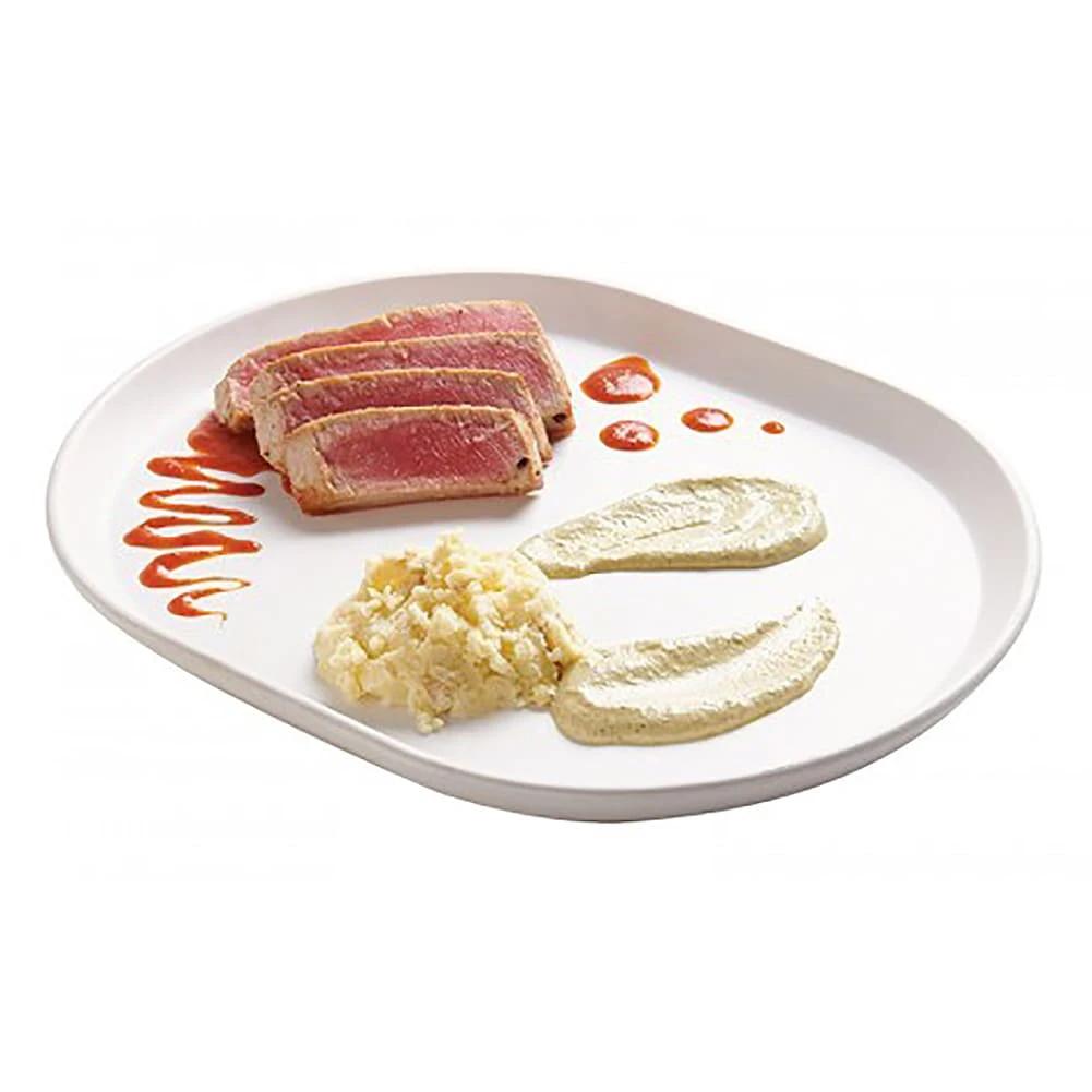 This Hudson platter provides a clean and modern look with lasting durability and unbeatable quality. The premium melamine is incredibly durable and provides an area of grace if the platter is accidentally dropped or mishandled. The raised rim keeps sauces contained and the platters are stackable to save space when not in use!