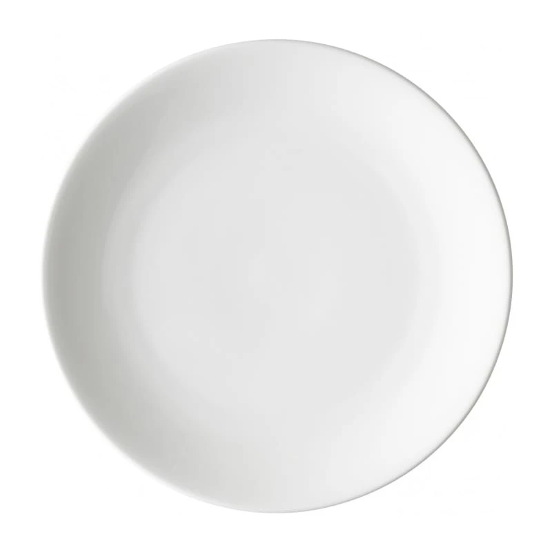 This Infinity 8‐1/4″ bone china plate is simply beautiful. Fine, clean lines and the translucency of true bone china makes this 32‐piece collection the ideal choice for elegance and versatility. Rimless and stackable, this dinnerware is a favorite of upscale hotels and banquets.
