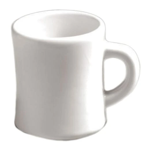 This 9.5 ounce Texan is white and made from vitrified china. Our mugs and cups are constructed using a one‐piece process that makes them more durable.