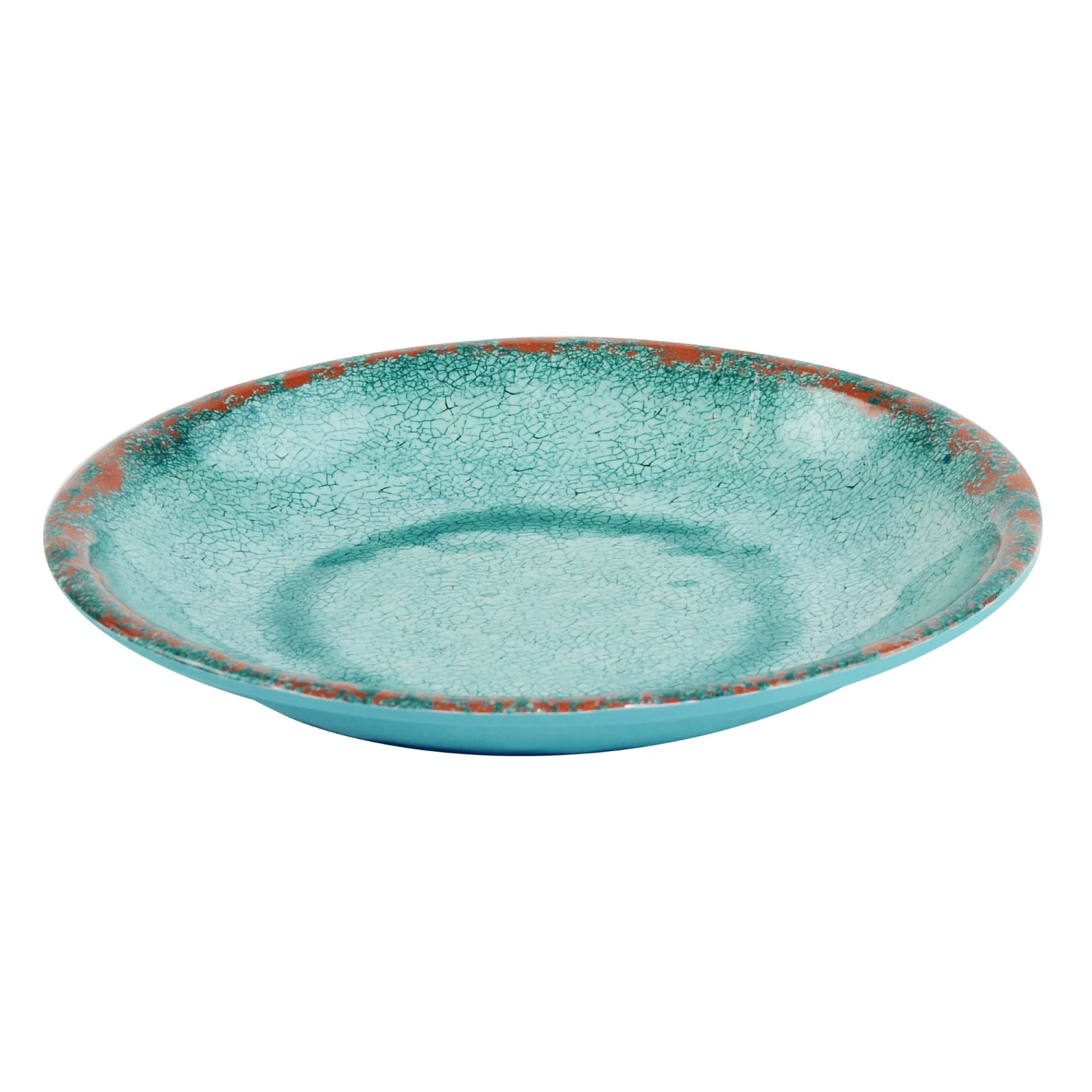 Serve delicious salads in this 12 ounce blue bowl from Europaeus. It is part of the Casablanca Collection and features a distressed, crackled effect texture and a vibrant color! It gives the look and feel of ceramics but with all the benefits of melamine.