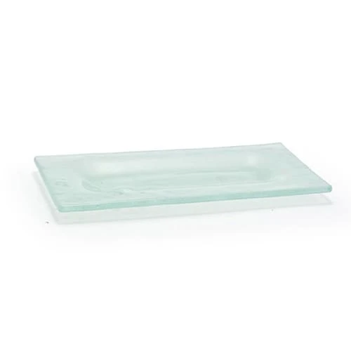 This Front Of The House® Arctic™ Rectangle Plate is an 8″ x 4″ size and is great for serving appetizers, desserts, and more. It is made from frosted glass with a green tint and has a textured design.