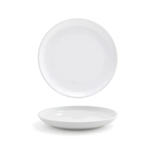 This Front Of The House® Harmony™ Plate is a 6.25″ size and is great for smaller food portions. It is made from white porcelain and has a flat plating surface with a modern raised edge.