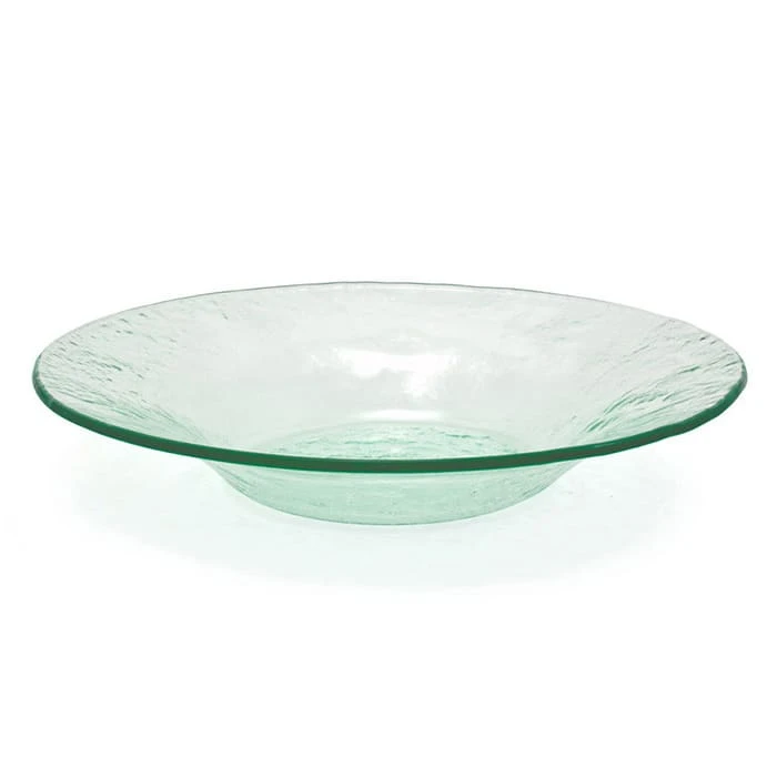 This Front Of The House® Arctic™ Flare Bowl comes in a 12″ size and is great for salads, appetizers, pasta dishes, and more. It is made from clear glass with a green tint and has a textured design.