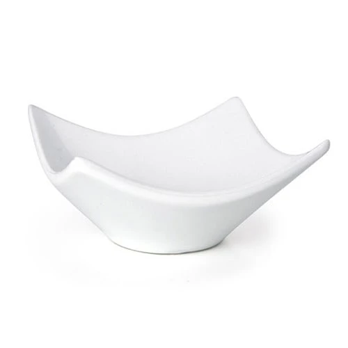 This Front Of The House® Origami® Square Bowl has a 7 Ounce capacity and can be used to serve condiments, smaller food portions, and more. It is made from white porcelain and has flared edges.