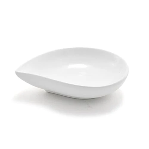 This Front Of The House® Teardrop Bowl has a 2 Ounce capacity and can be used to serve dipping sauces and more. It is made from porcelain and comes in a white color.