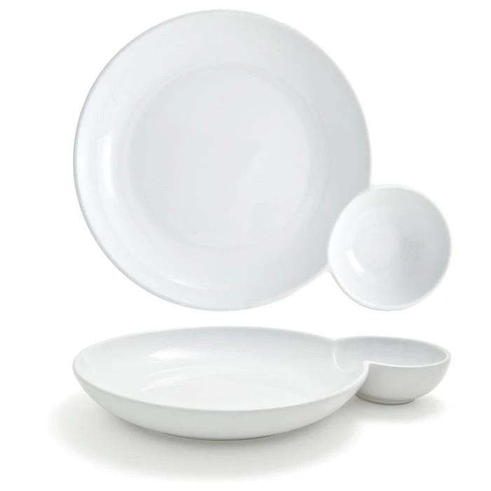 This Front Of The House® Harmony™ Bento Duo Bowl allows you to serve a main course with a side dish or sauce. It is made from white porcelain and has a 32 Ounce capacity.