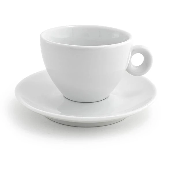 This Front Of The House® Milano Cup and Saucer set is perfect for serving up hot coffee or tea. It is made from porcelain and comes in a white color.