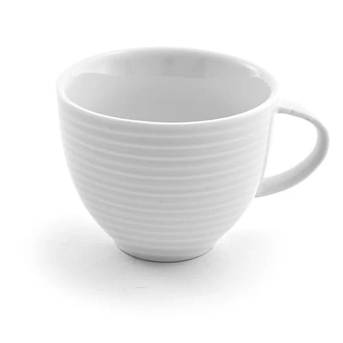 This Front Of The House® Spiral® Cup has an 8 Ounce capacity and is great for serving hot beverages like coffee and tea. It is made from porcelain and features a subtle linear design, adding a touch of sophistication to your table.