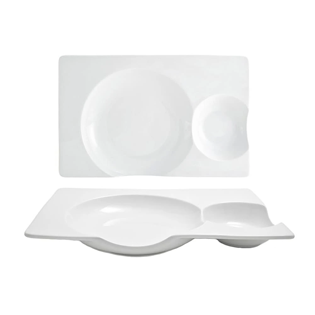 This Harmony Bento⢠Plate from Front Of The House is a modern take on compartmental serving and is compatible with many accompanying pieces.