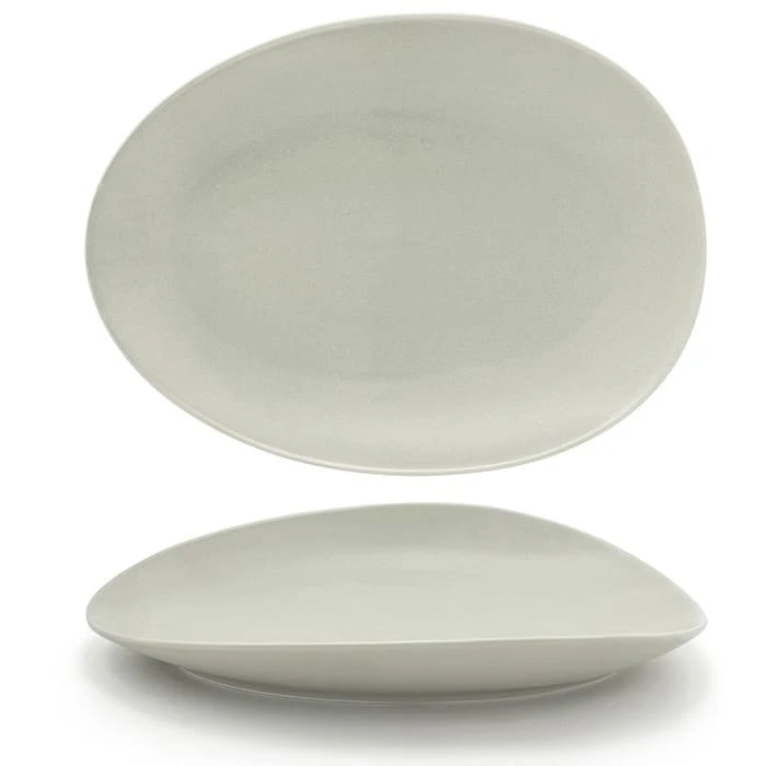 This Front Of The House® Tides® Plate is a 10″ size and can be used to serve a variety of meals. It is made from porcelain and comes in a Pumice color with a semi-matte finish.