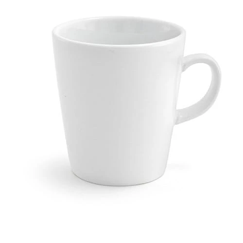 This Front Of The House® Soho Mug has a 14 Ounce capacity and is great for coffee, tea, and other hot beverages. It is made from porcelain and comes in a white color.