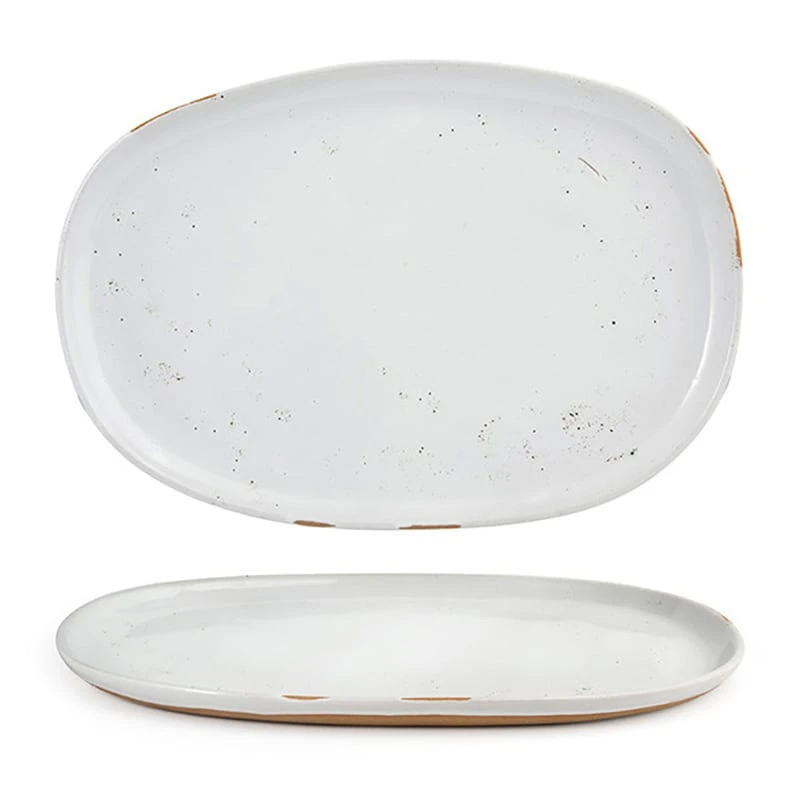 Serve tasty appetizers or entrees on this 13″ x 9″ Artefact® plate from Front Of The House®. This oval plate features durable porcelain material with an ash color and the feel of pottery.