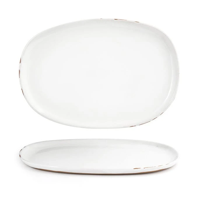 Serve delicious appetizers or entrees on this 13″ x 9″ oval plate from Front Of The House®. It is part of the Artefact® Collection and combines the feel of pottery with the durability and strength that only commercial-grade porcelain provides.