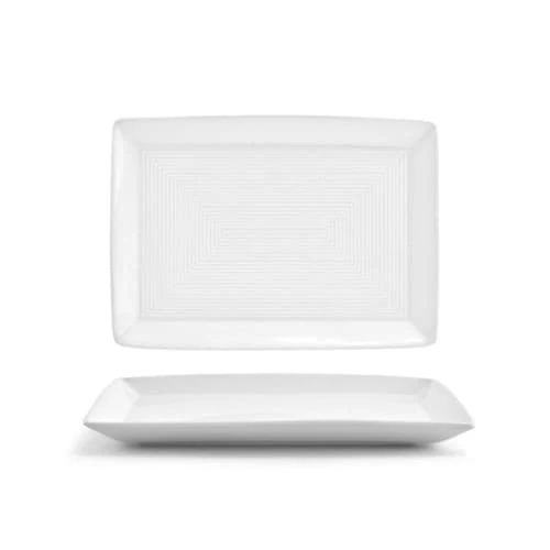 This Front Of The House® Spiral® Rectangle Plate comes in a 5″ x 7″ size and can be used to serve side dishes, desserts, and more. It is made from porcelain and features a subtle linear design, adding a touch of sophistication to your table.
