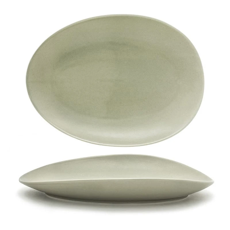This Front Of The House® Tides® Platter is a 14.5″ size and is great for serving extra-large portions of food. It is made from porcelain and comes in a Pumice color with a semi-matte finish.