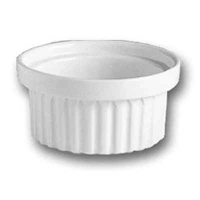 This 6 ounce white ramekin is stackable and perfect for a side of salsa or salad dressing.