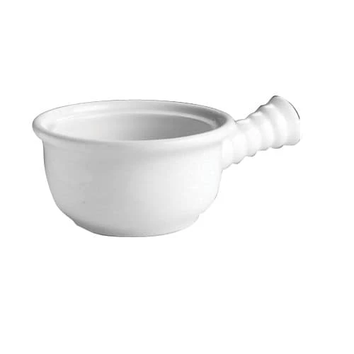 This Hall® China soup crock has a side handle so it’s easy to serve and use. Made of heavy-duty china, it retains heat and is oven and microwave safe.