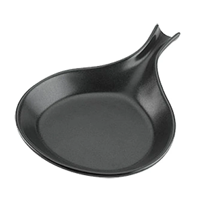 This 18 ounce fry pan has a black semi-gloss finish that gives it the look of cast iron. It’s oven safe up to 450° F and can go right from the oven to the table.