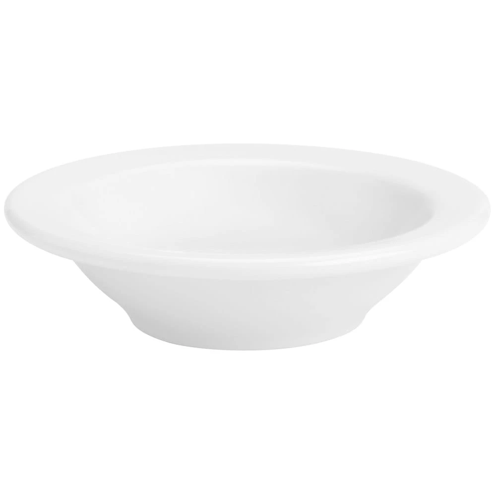 This 4 ounce fruit dish from Homer Laughlin features a rolled edge and a heavy‐gauge, high Alphalain® body that provides maximum resistance to chipping and enhanced heat retention. Perfect for restaurants and catering!
