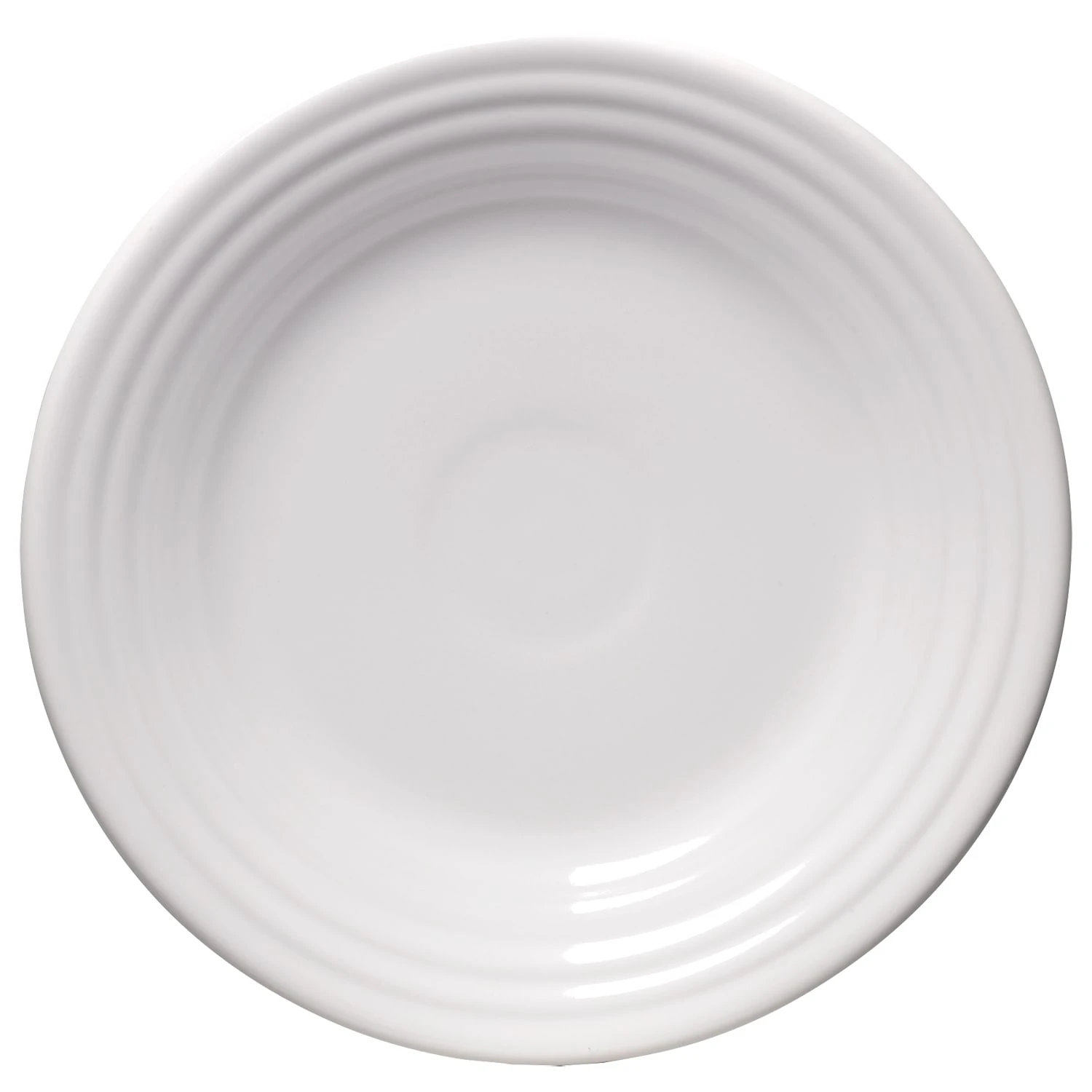 Guests will love the wide rim with sculpted rings and the elegant white body color of this Fiesta® White line dinner plate.