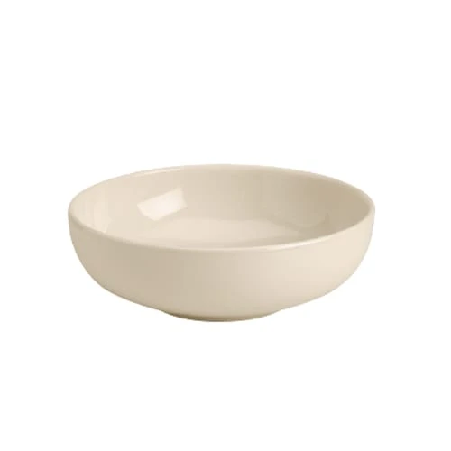 Serve large salads or sides with this 55 ounce bistro bowl from Homer Laughlin. It is 8.56″ round and the ivory color and simple design makes it perfect for any table setting.