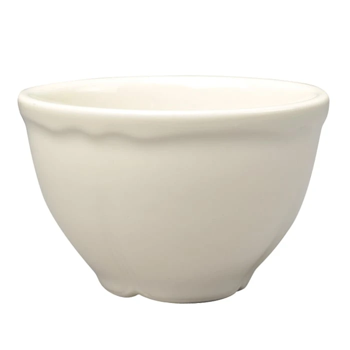 This 7.25 ounce bouillon cup features can be used with the Homer Laughlin 58000 sauce. It features the scalloped edge of the Carolyn design for a classic look.