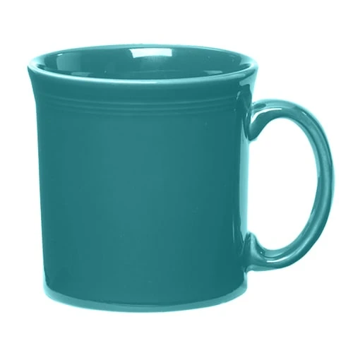 This 12 ounce Java mug has a sleek design and features the concentric rings below the rim. It also features the striking blue‐green color of the Fiesta® Turquoise line.
