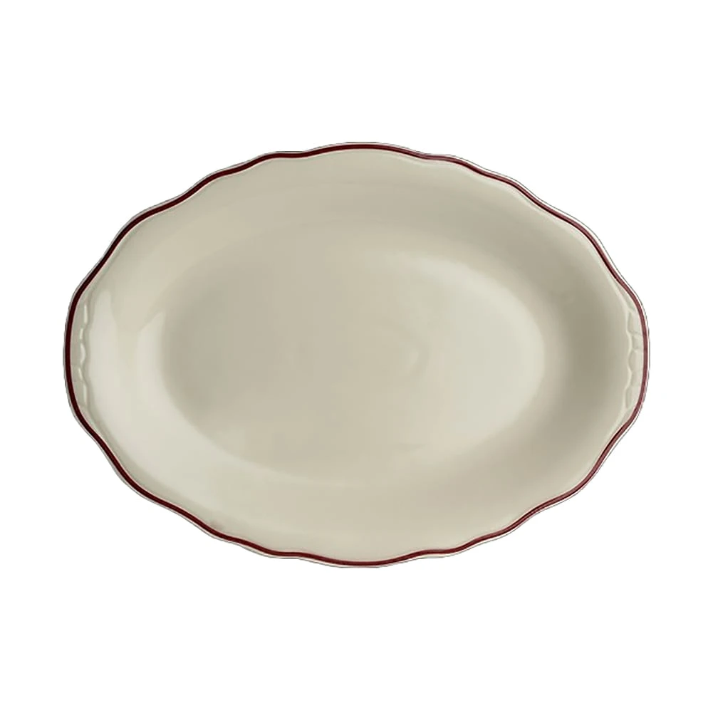 With a distinctive scalloped edge, Styleline allows the food to take center stage. A maroon thin band outlines each piece, simply and subtly elevating the vintage-style ware with a touch of sophistication.