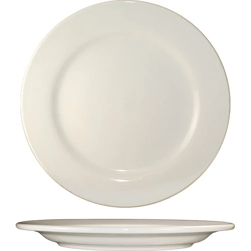 This Roma™ plate features a rolled edge, a beautiful American white body, and is both dishwasher and microwave safe. Roma™ dinnerware is a great choice for your business.