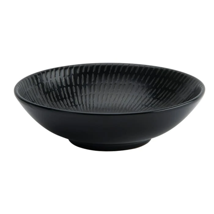 Motion and movement of the potters wheel create this spiraling textural surface. Each piece combines a tactile sense of carved relief, with the charm and pattern of batik. Center plating naturally focuses flavor with almost hypnotically spiraling waves of light.