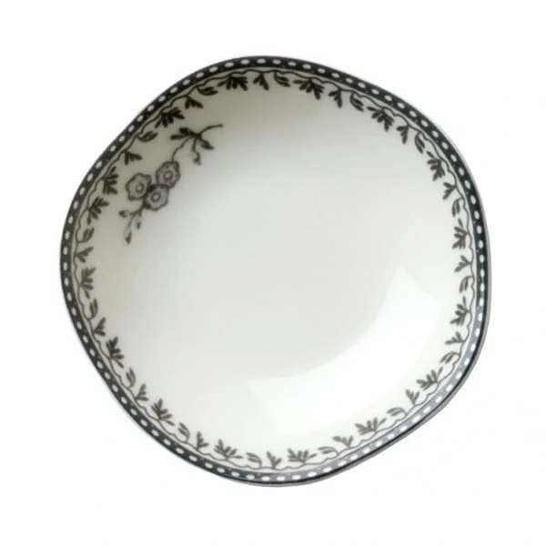Add an elegant look to your table with this beautiful 1 ounce sauce dish from Oneida®. It is part of the Lancaster Garden® Gray Collection and features a beautiful gray floral design on a smooth, white body. This sauce dish can also be used as a tea bag holder.
