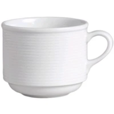 This Aura 8 ounce mug is stackable and resists thermal shock.