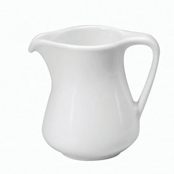 The beauty of this Royale™ Undecorated 6.5 ounce creamer will certainly catch the attention of your guests. It features beautiful bright white porcelain construction and is perfect for banquet operations.