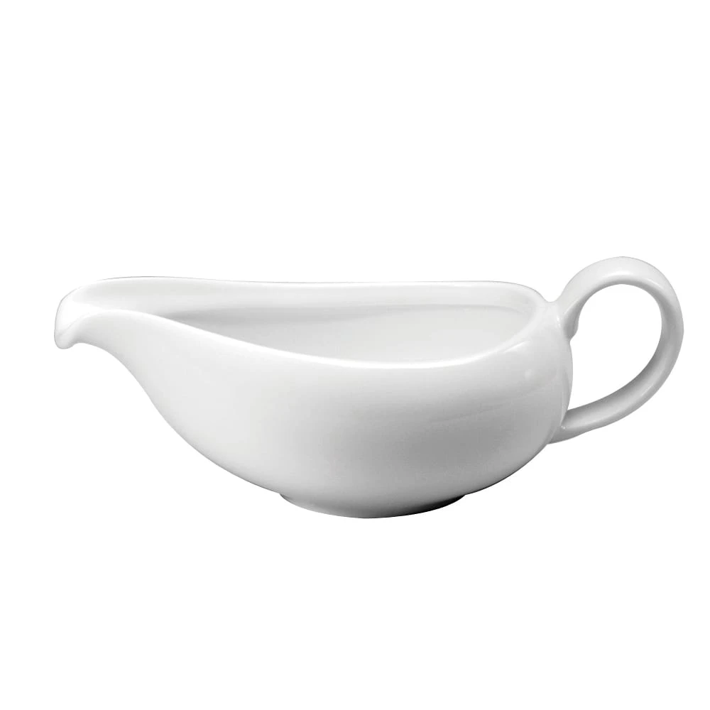 Serve sauces or gravy in this 7 ounce sauce boat from Sant’ Andrea. It is part of the Royale Collection and features beautiful bright white porcelain construction. Perfect for banquet operations!