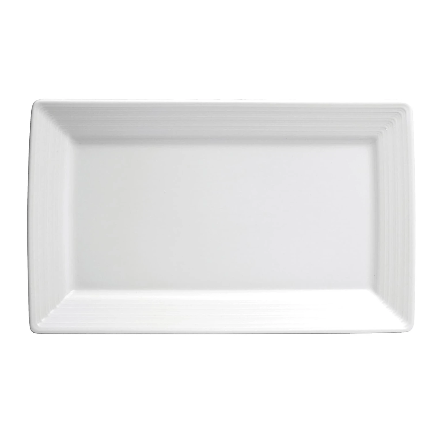 Bring this Botticelli™ Rectangular Platter to the table for both casual or fine dining presentations. The dazzling white porcelain body has a hand-carved texture around the rim and the rectangular shape will add a modern look to the table.