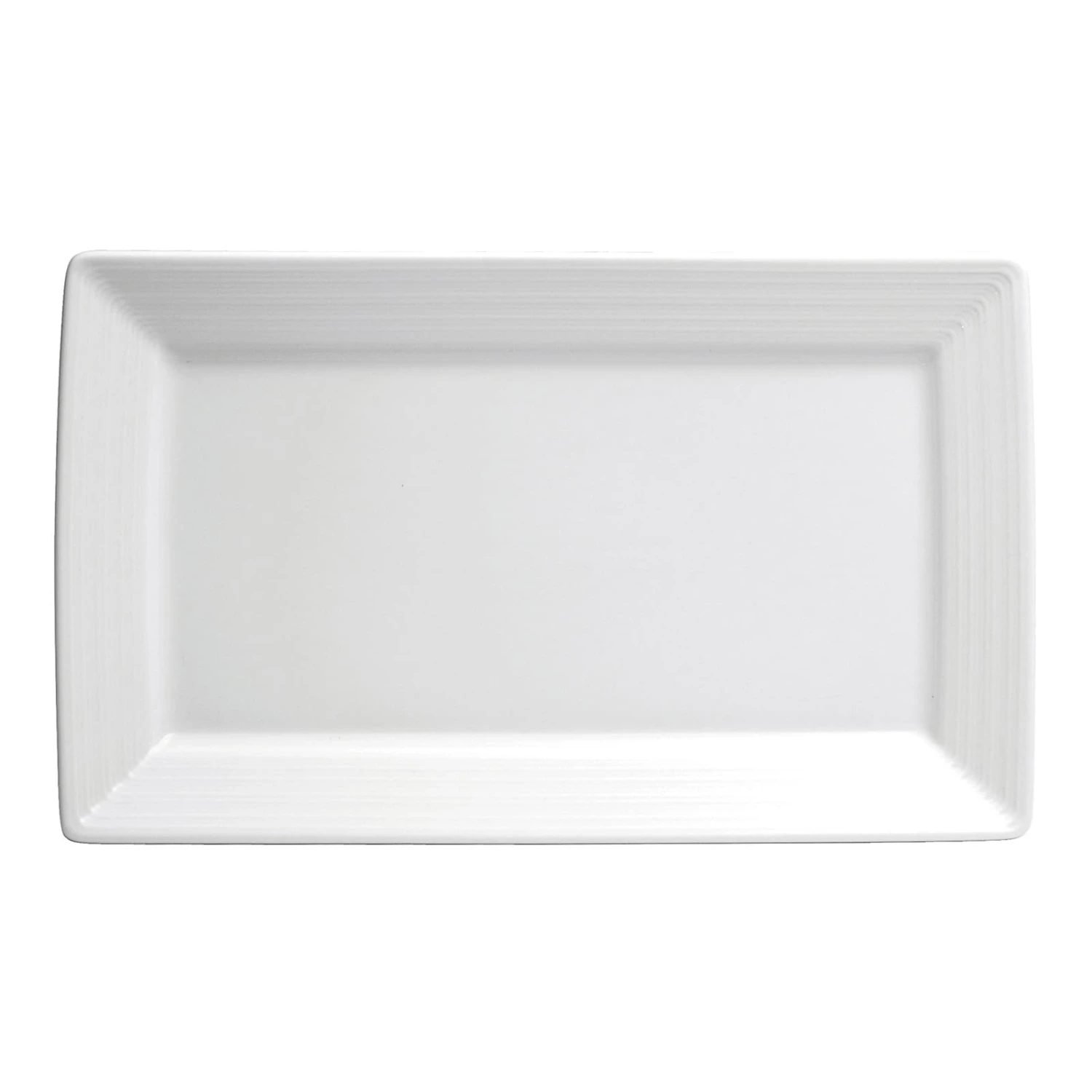 Bring this Botticelli™ Rectangular Platter to the table for both casual or fine dining presentations. The dazzling white porcelain body has a hand-carved texture around the rim and the rectangular shape will add a modern look to the table.