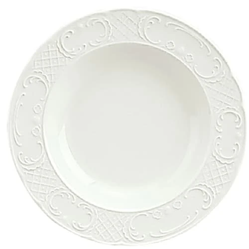 Serve delicious soups in this 9.5 ounce rim soup bowl from Schonwald. It is part of the Marquis Collection and is perfect for formal celebrations or sophisticated events. All pieces of this collection are decorated with elaborate relief ornaments that resemble richly complex embroidery.
