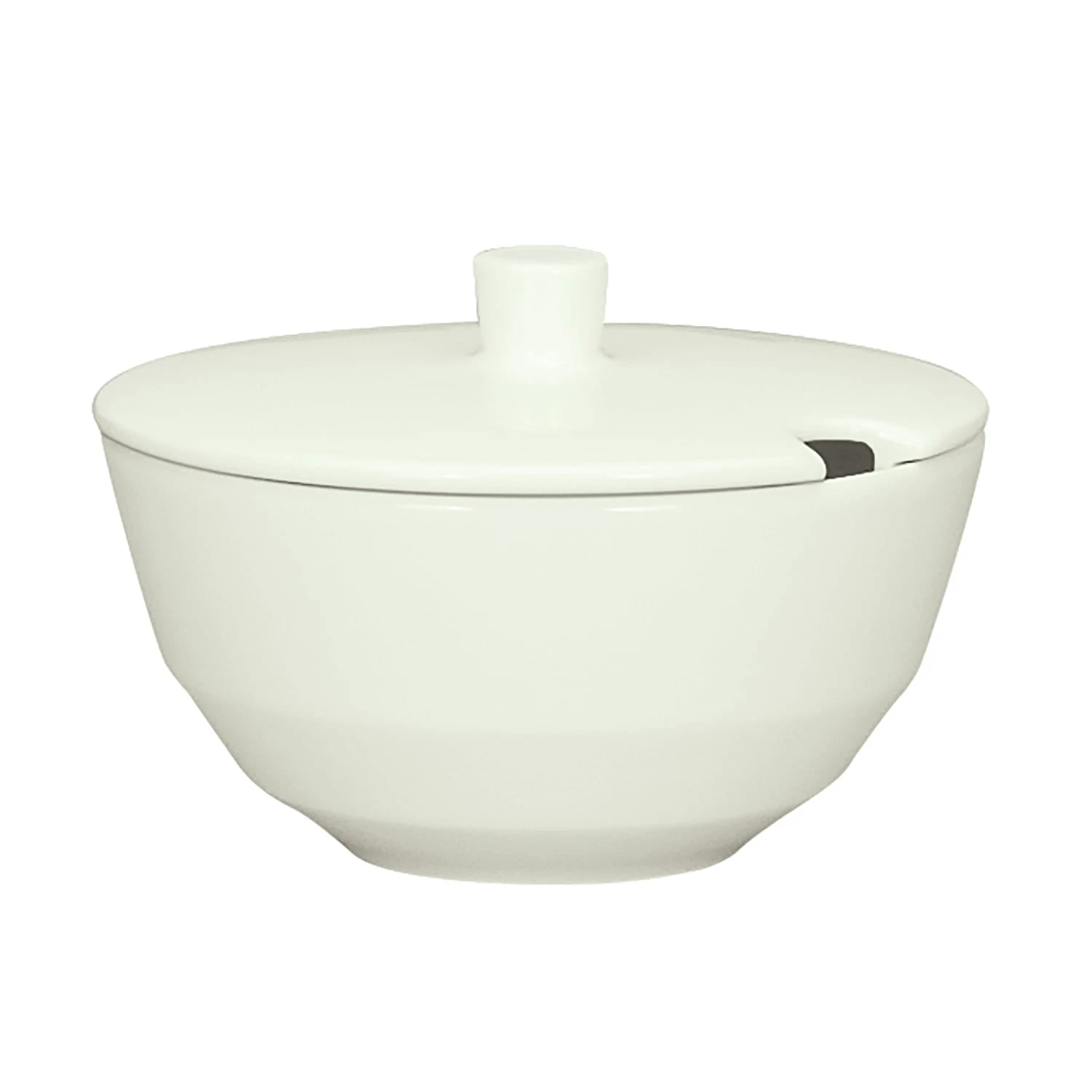 This beautiful sugar bowl from Schonwald is part of the Allure Collection and features a thin porcelain body. This 7.75 ounce sugar bowl includes a lid and the bone white color will blend with any table setting.