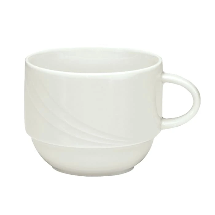Serve coffee or tea in this beautiful porcelain stacking cup from Schonwald. It is part of the Donna Collection and features gently curving embossed arches. This cup has a capacity of 8.5 Ounces and is perfect for restaurants, buffets or banquet facilities.