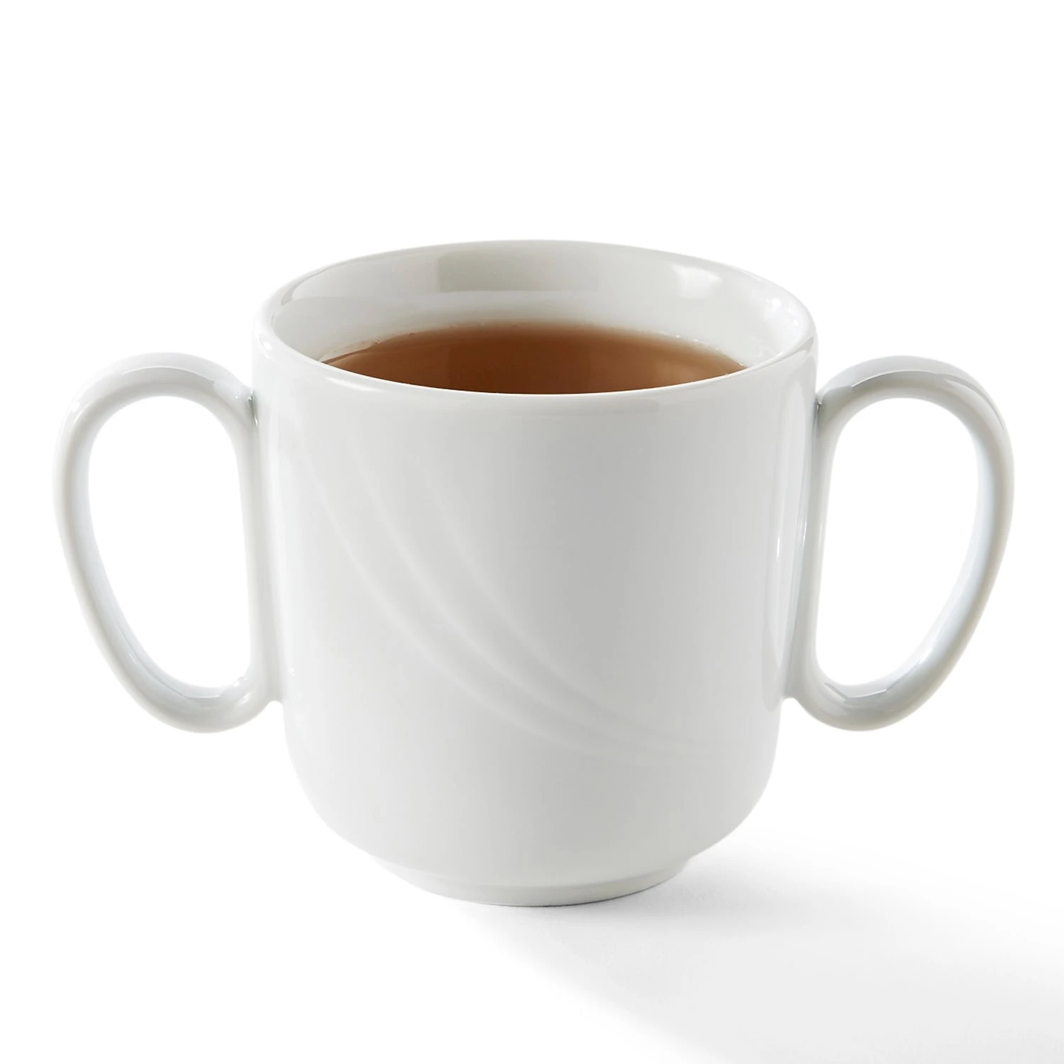 This Donna Senior 10.5 ounce mug has a unique 2‐handled design that makes dining easier for people with reduced vision, mobility and motor skills ‐ without calling attention.