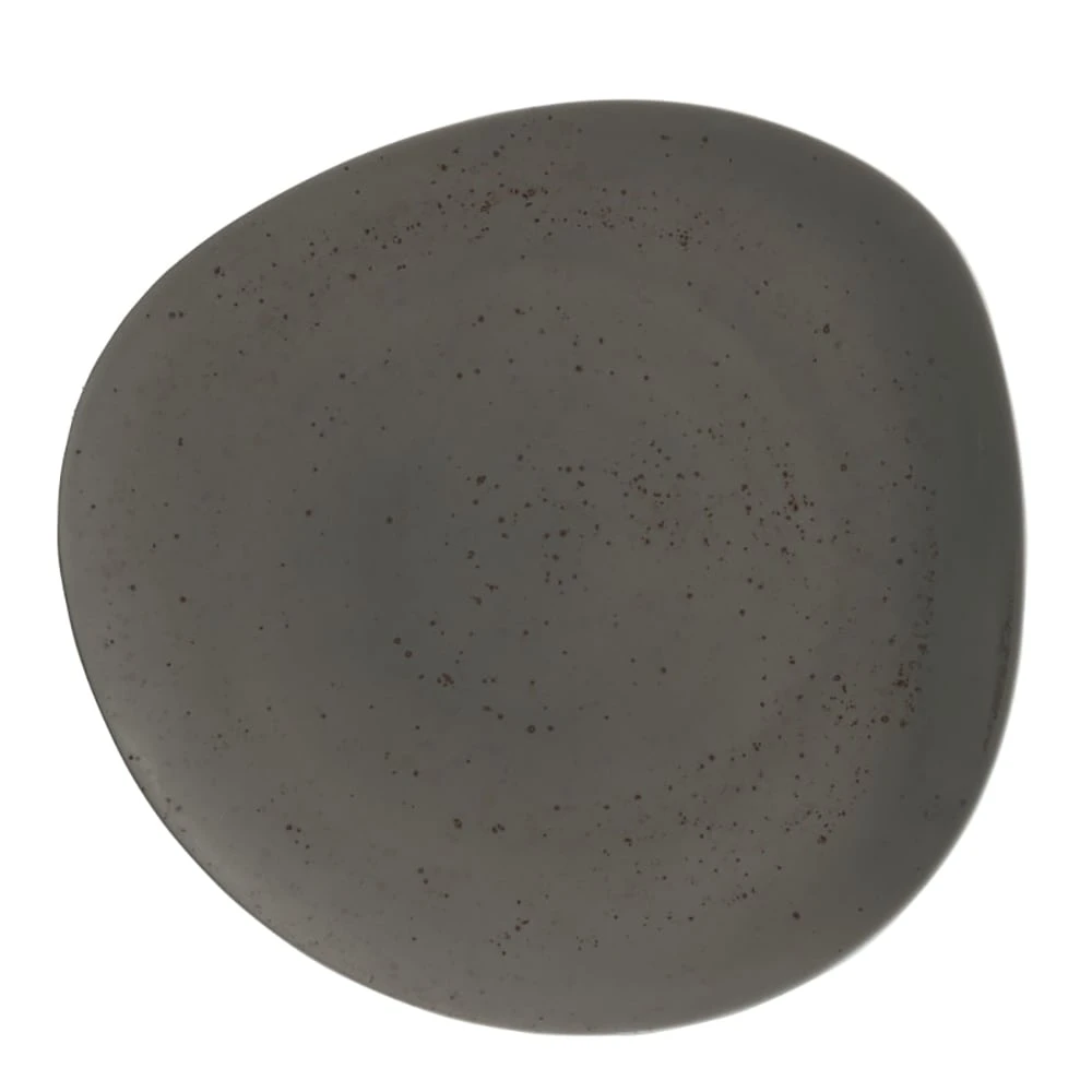 This Pottery dark gray 12‐3/8″ plate features a hand‐crafted look that makes it look like it just came off the potter’s wheel. This plate features vibrant shades that meet natural colors on a richly speckled surface, creating an authentic, natural aesthetic.
