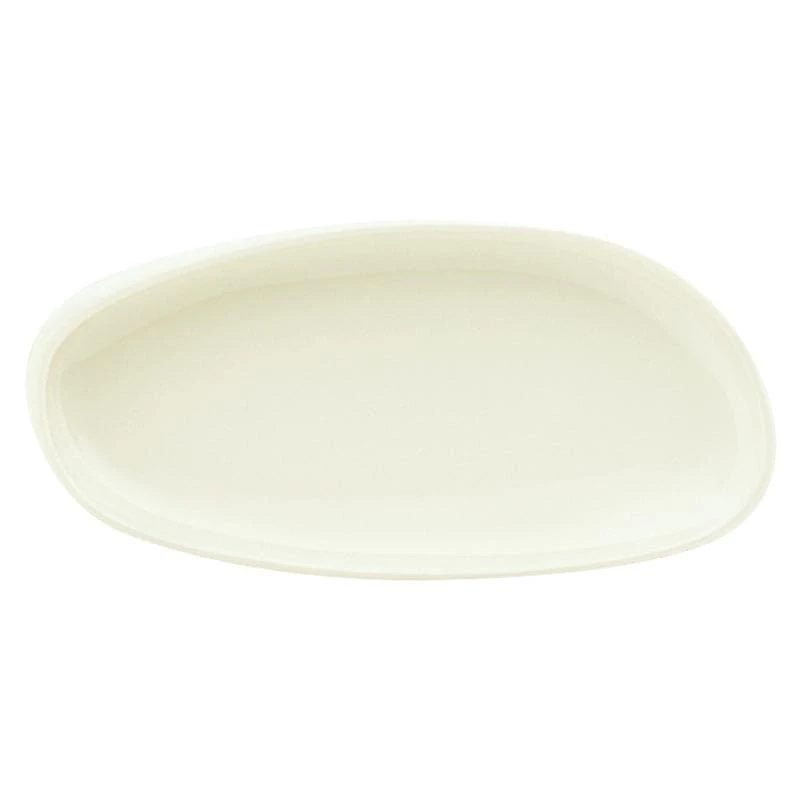 Serve delicious appetizers or entrees with this 15″ x 6.25″ tray from Schonwald . It is part of the WellCome Collection and features asymmetrical designs and unconventional shapes. It has a creamy white porcelain body and in spite of its delicate appearance, it is tough enough to stand up to the day-to-day stresses encountered in hospitality environments.