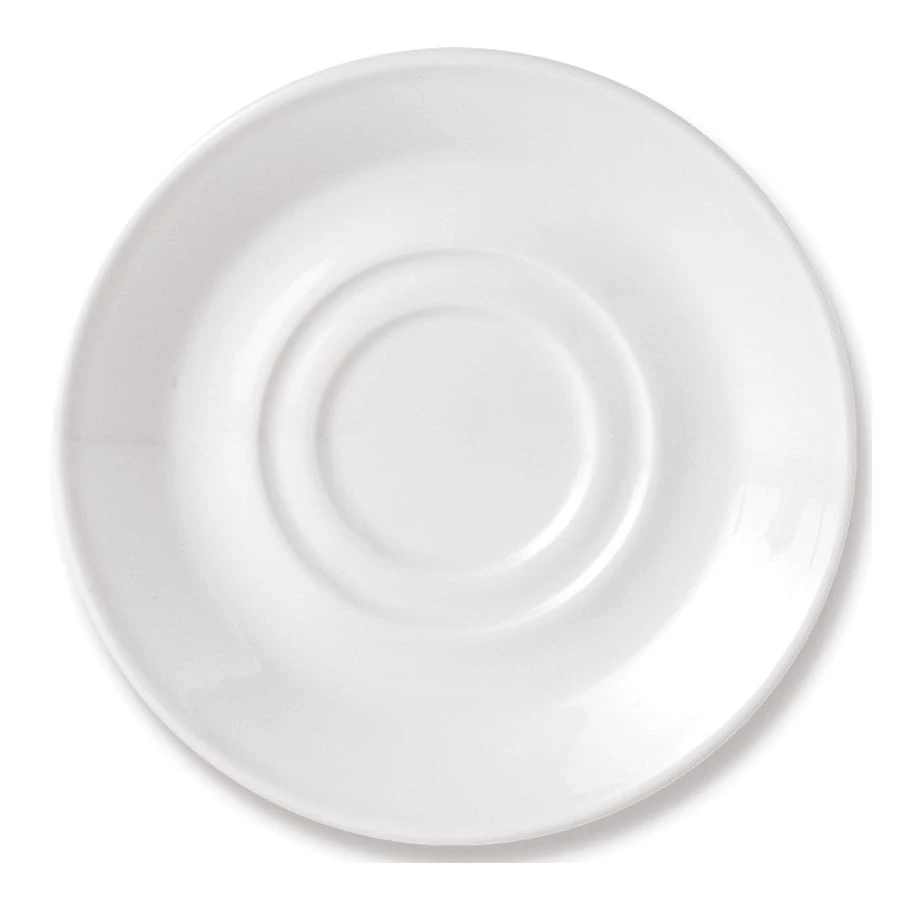 Use this saucer with Performance Simplicity White coffee cups; 6 ounce cup 11010154, 6 ounce cup 11010157, 6 ounce low cup 11010184, Slimline 10 ounce cup 11010188, Slimline tall 7 ounce cup 11010216, and the stacking Slimline 7 ounce 11010217.