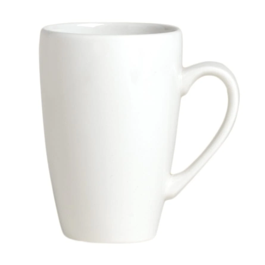 This Performance Simplicity White Quench mug holds 3 ounces and is shaped like a lab beaker. Great for cappuccino and it’s made from vitrified china to help keep coffees hot longer than other brands.